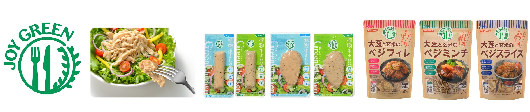たんぱく質危機や環境問題、そして健康意識の高まりから世界的に注目されているプラントベースフード(PBF)。グループ会社のマイセンは、お客様の健康と地球環境の保全に注力してプラントベースフードを日本で先駆けて開発してきました。亀田製菓の米菓で培った技術を活用し、おいしく楽しいPBF商品『JOY GREEN』を通じて、お客様と地球へハッピーを提供しています。