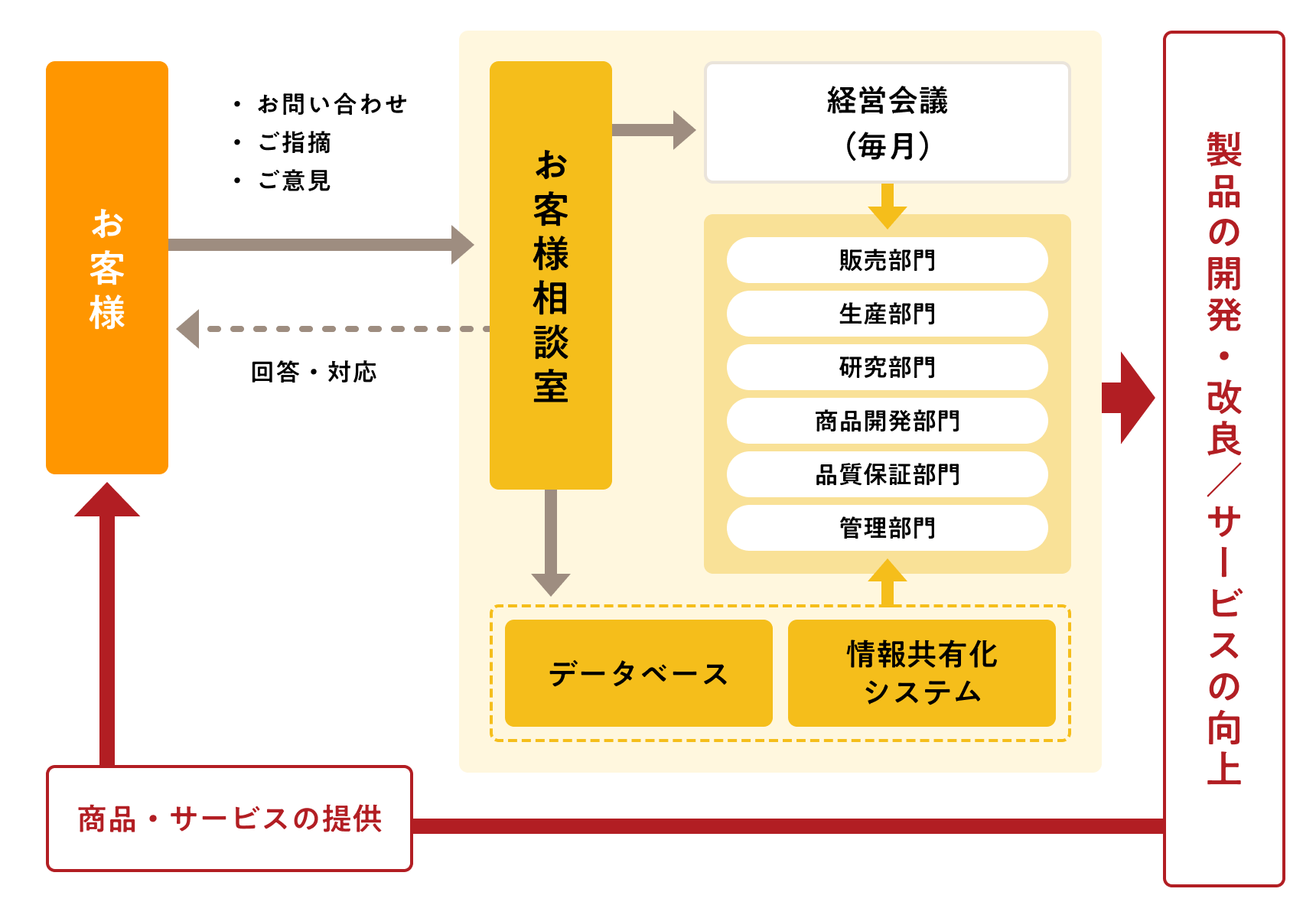 - ・私たちは、お客様の声を商品・サービスの改善・開発に反映するように努めます。