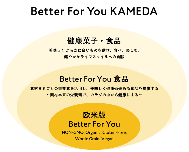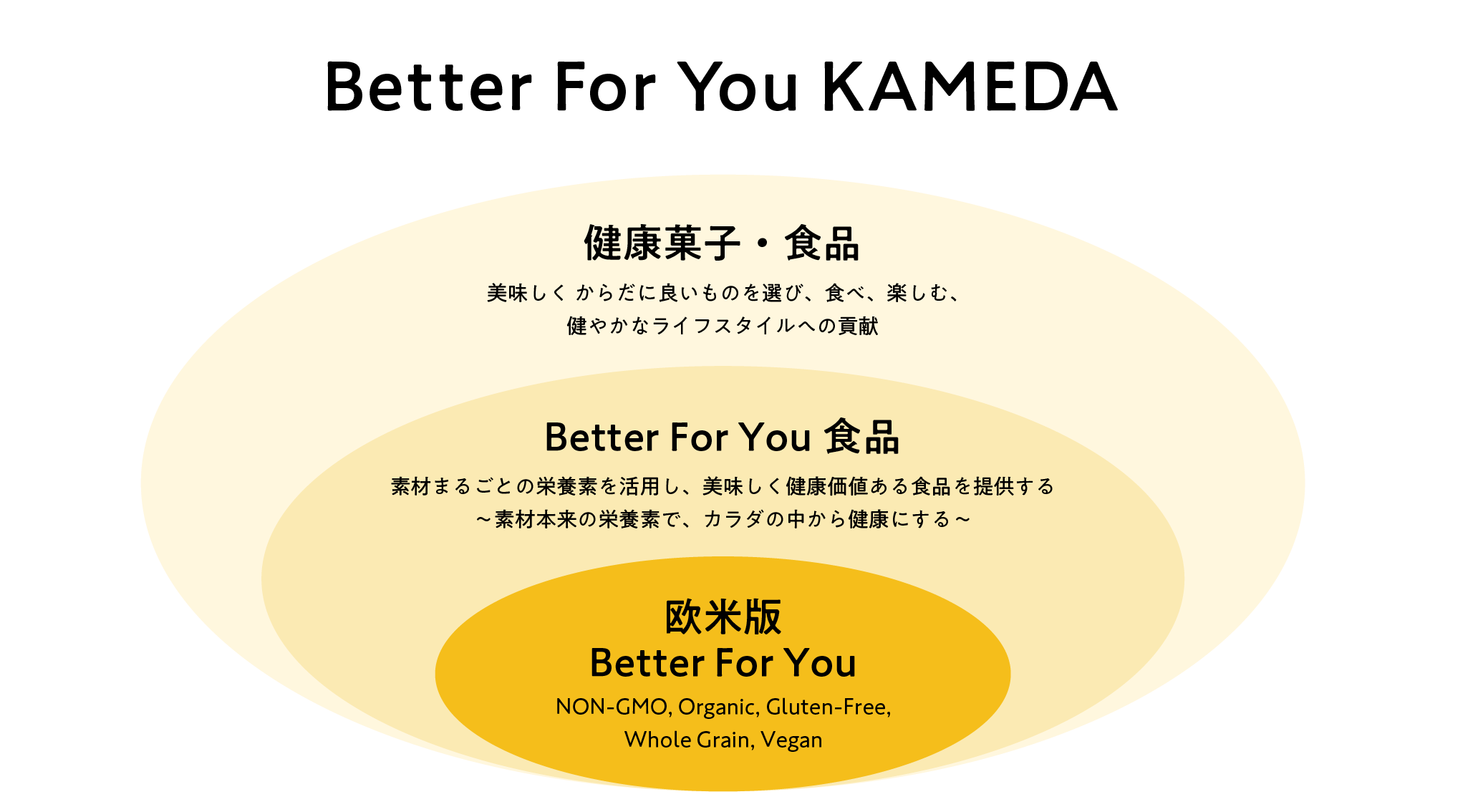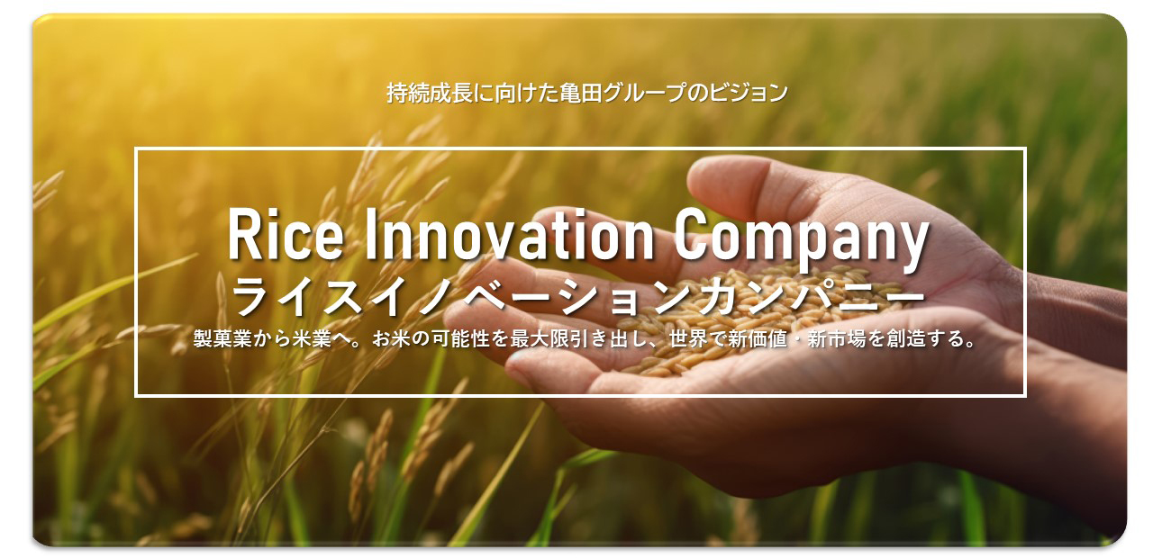 亀田製菓グループの存在意義は、お米の恵みを美味しさ・健康・感動という価値に磨き上げ健やかなライフスタイルに貢献することです。グループビジョンであるライスイノベーションカンパニーの実現に向けて、お米の可能性を最大限に引き出すことで、社会に対して新価値や新市場を創造していきます。