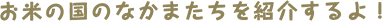 おこめ小学校のお米栄養学の先生。自分もお米なので、お米の大切さをおしえるのが上手。