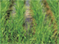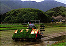苗の葉が2枚以上、長さが12cmくらいになったら田植機で1株に4本くらいずつ植えます。いまでは10列同時に植えられる大型機もあります。