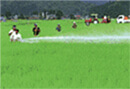 夏が近づくとともに、稲がぐんぐん成長します。肥料をまいたり、病気にならないように農薬をまいて、丈夫な稲が育つように気を配ります。