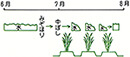 6月の終わり頃から7月のはじめに稲の根がよく伸びて肥料をよく吸うように溝を掘り、水田の水を抜いて中干しをします。