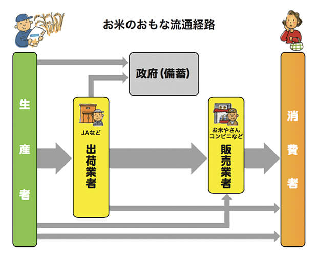 お米の小売りは、お米やさんばかりでなく、コンビニやお酒やさんだったりします。流通経路もいろいろあります。