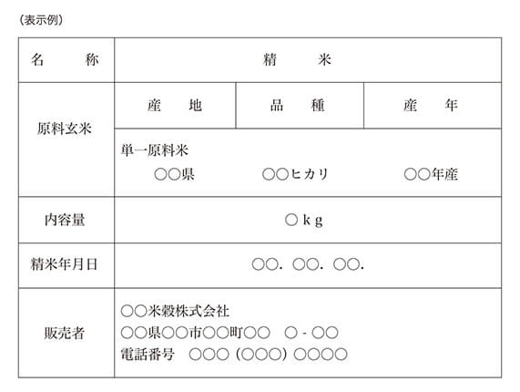 お米には、食品表示法に基づく食品表示基準により、品質に関する表示が義務づけられています。お米を買おうとするときに、袋の中に入っているお米のことが簡単にわかるようにすることが目的です。お米の袋に記されている原料玄米の欄には、産地・品種・産年などが一目でわかるようになっています。ブレンド米の場合は「複数原料米」「ブレンド米」などと表示されます。また、国内産と外国産が使用されている場合には、それぞれ使用量の多い順に割合が表示されます。