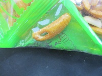 「亀田のまがりせんべい」「手塩屋」「ソフトサラダ」などの商品は味付けに調味油を使用しており、調味油が製品内部に吸収しきれずに個包装の内側に付着して水滴のように見えることが稀にございます。
