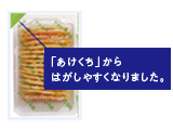 包材を改良し、乾燥剤を使用しないようにしました。乾燥剤を入れている商品には、パッケージ裏面に「乾燥剤は食べないでください」と表示しています。 実施:2023年8月~
