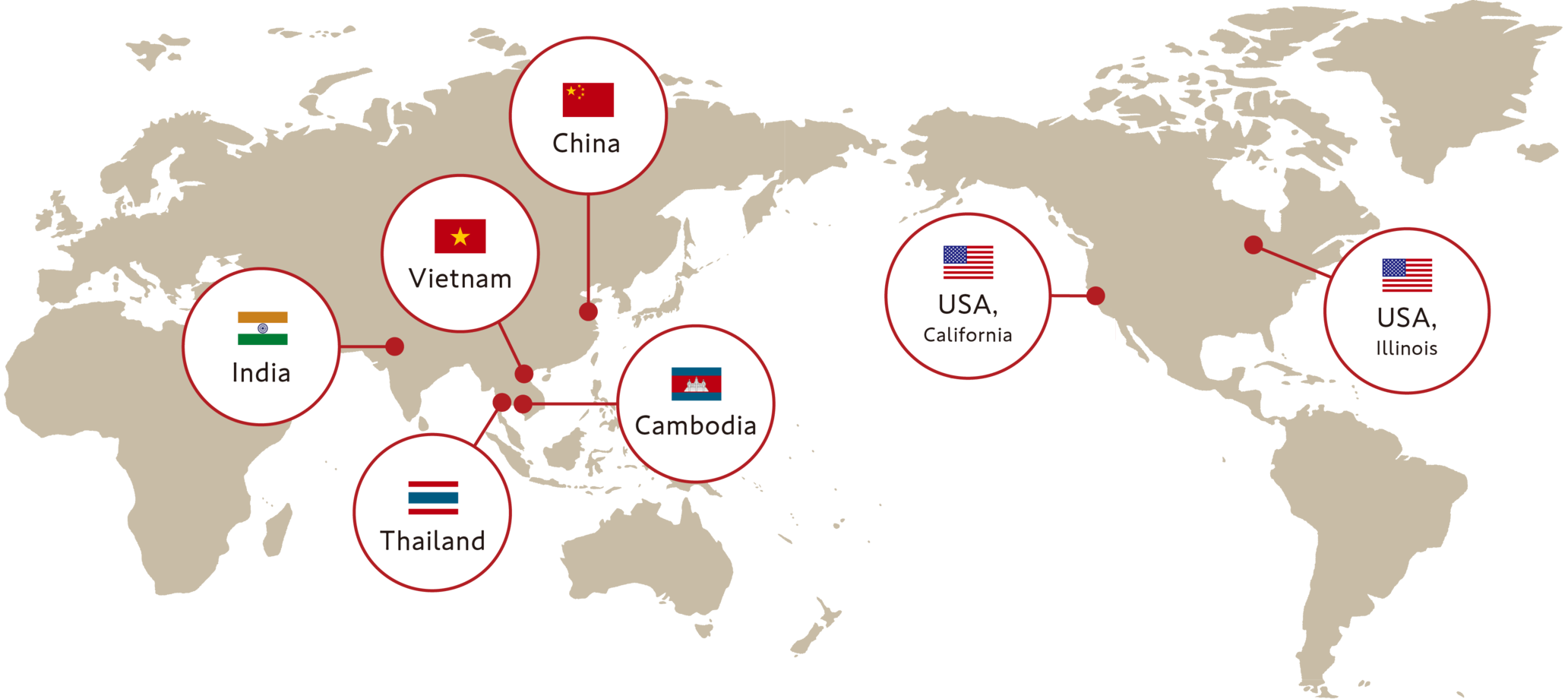 In Asia, we enhanced our sales in the Chinese market by establishing Qingdao Kameda Foods Co., Ltd. as our production base in Qingdao, China in 2003. In 2020 we acquired Singha Kameda (Thailand) Co., Ltd. in Thailand as a subsidiary to be a base for cross-border trade and the sale of rice crackers to various parts of the world. Recently we have expanded our presence to Vietnam, India, and Cambodia. We are developing brands to meet customer needs in each country and are aiming to increase cross-border trading.