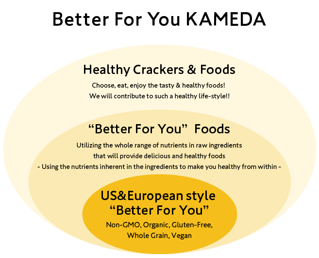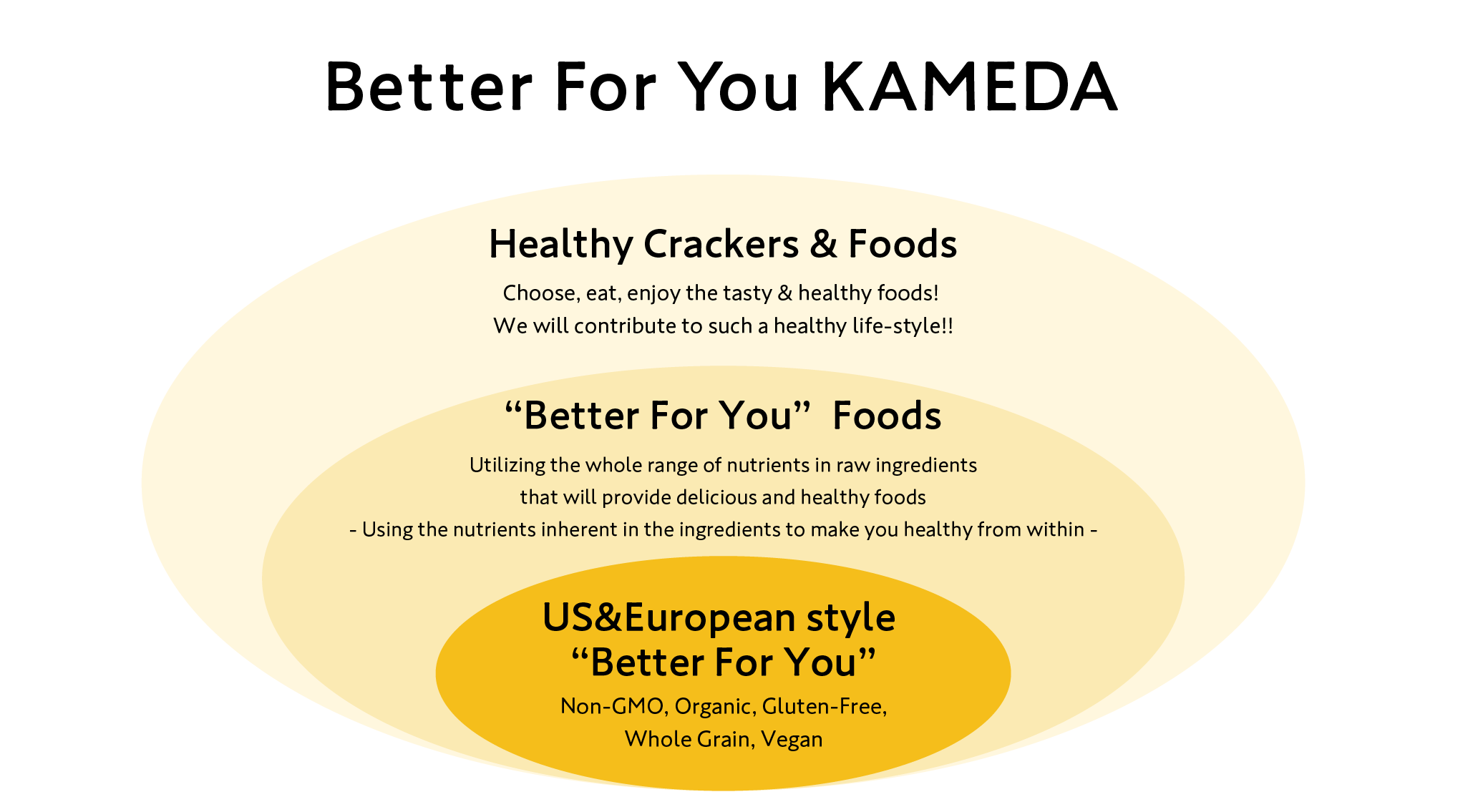 The KAMEDA SEIKA Group’s Purpose is to contribute to a nice lifestyle with the blessings of rice to further refine the value of excellent flavor, health and excitement. To realize the Group Vision to become a Rice Innovation Company, we will create new values and markets for the society by maximizing the potential of rice.