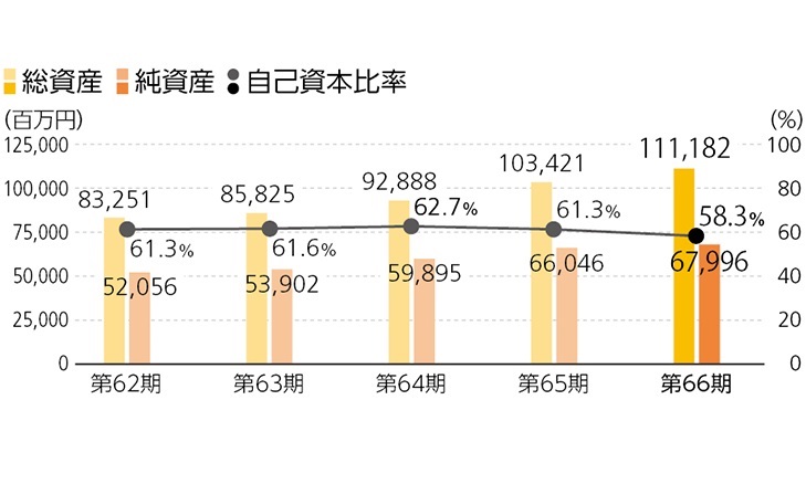 | 純資産(百万円) | 59,895 | 66,046 | 67,996 | 73,718 | 78,908 |