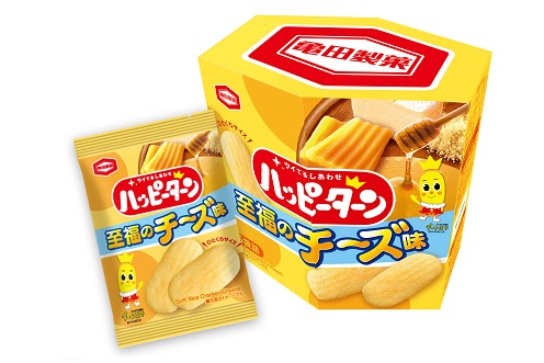 お客様の人気投票でNo,1に選ばれた※ 『ハッピーターン至福のチーズ味』がひとくちサイズになって再登場!チーズ の味わいとほんのりとしたはちみつの甘さがハッピーターンの甘じょっぱさと相性抜群です。