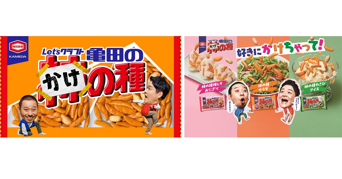 CMでは、『亀田の柿の種』を『亀田の“かけ”の種』に改名し、おなじみの『亀田の柿の種』『亀田の柿の種 梅しそ』『亀田の柿の種 わさび』をサラダやごはん、アイスにかけまくっていきます。第1弾よりパワーアップした別人のようなキレキレなダンスに合わせて、「かけの種」を楽しむ千鳥のお二人に注目です。