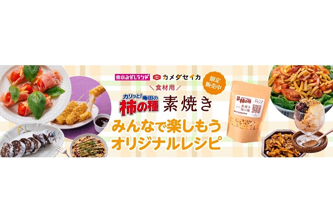 「亀田の柿の種」といえば、カリッとした食感と、ピリッと辛い醤油味が特徴ですが、お米で出来ている「亀田の柿の種」ならではの新しい魅力をお伝えするため、東京おかしランドにあるカメダセイカ限定で『亀田の柿の種 素焼き』を新発売いたします。いつもの「亀田の柿の種」は生地を焼いたあとに秘伝の醤油蜜を絡めて味付けをしていますが、今回の『亀田の柿の種 素焼き』はあえて味付けをせず、お米本来の味わいを際立たせた柿の種です。料理や素材の味を邪魔しないお米ならではの味わいで、どんな食材とも相性ピッタリです。そのままでも、お手軽なトッピングでも、お好きな方法でお楽しみいただけます。