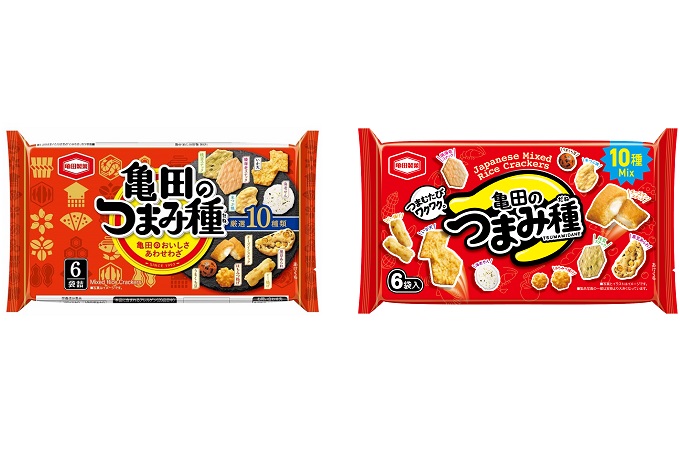 『亀田のつまみ種』の新テーマ「多種多彩、つまむたびワクワク。」の策定にあわせて、パッケージもリニューアルします。新パッケージでは、特徴的な赤ベースの印象はそのままに、つまむ時の指の形と「つ」を掛け合わせたブランドロゴや製品の配置などから「見て、迷って、選んで、食べて、楽しい」ワクワク感のあるカジュアルな印象に一新しました。