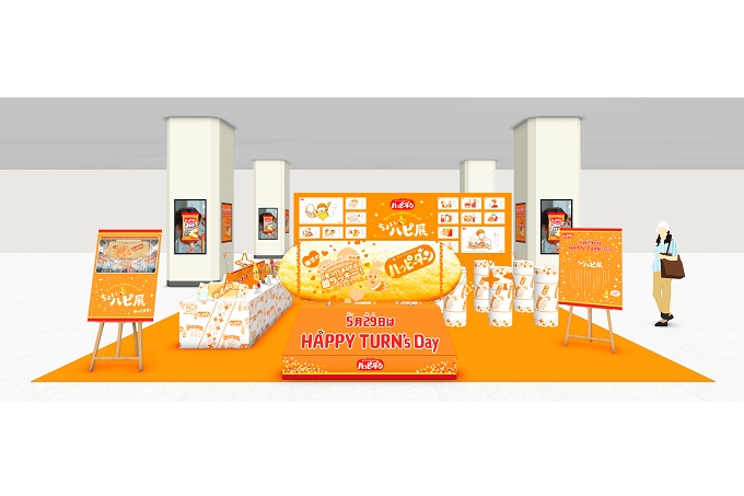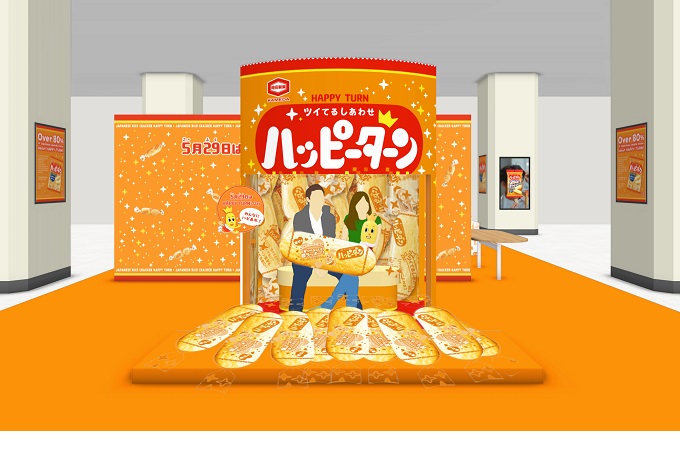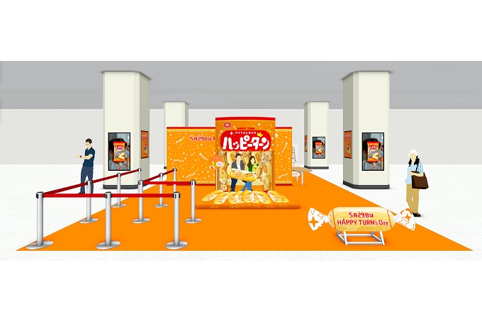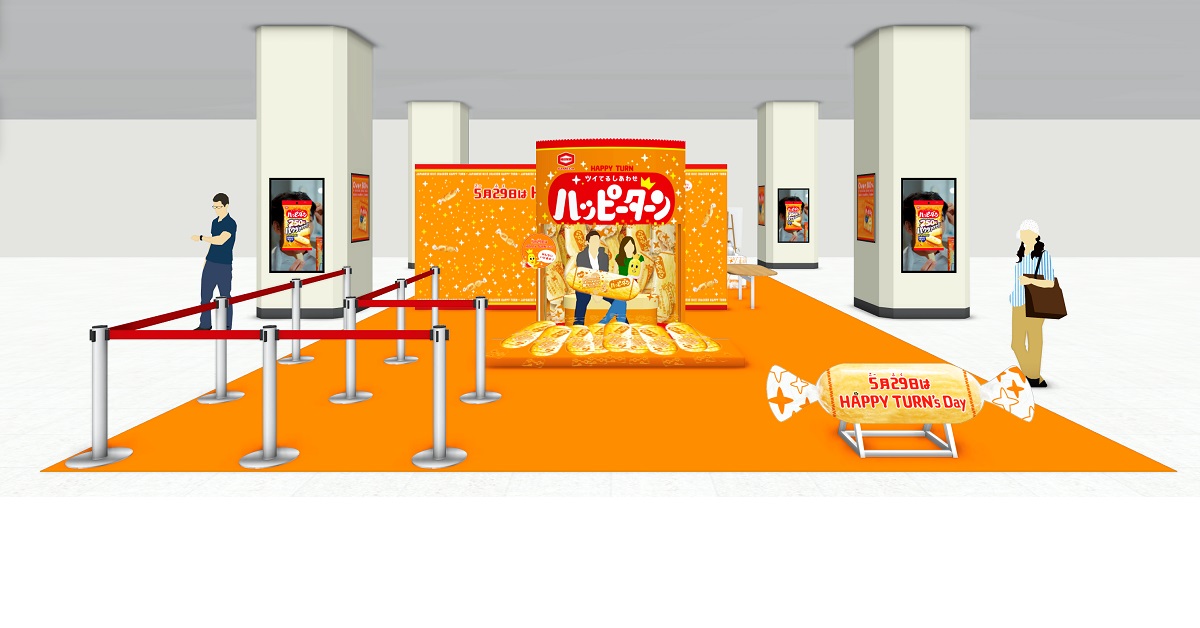 亀田製菓は、ハッピーターンを通じて一人でも多くの方にハッピーをお届けしたいという気持ちから、5月22日(木)~5月29日(木)まで、東京駅の八重洲口改札外イベントスペース(JR東海 東京駅イベントスペース)にて、お客様にハッピーがターンする体験型ポップアップイベントを開催します。