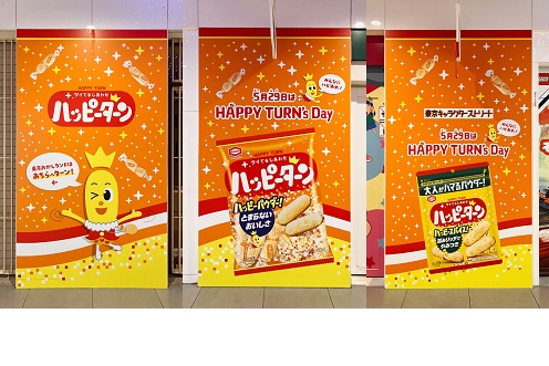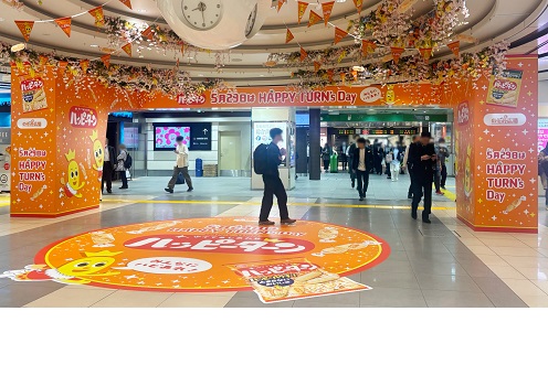 同期間中、 「東京駅一番街」の地下1階もハッピーターン仕様の装飾が施され、東京駅の様々な場所にハッピーターンと公式キャラクターであるターン王子が出現します。
