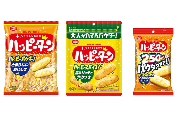 あまじょっぱい粉がツイてる“みんながハマる”『ハッピーターン』と、8種のスパイスをオリジナルブレンドし旨みがスゴい味わいで、お酒にも合う“大人がハマる”『ハッピーターン スパイス』は、全国のスーパーマーケットやコンビニエンスストアなどで発売中です。