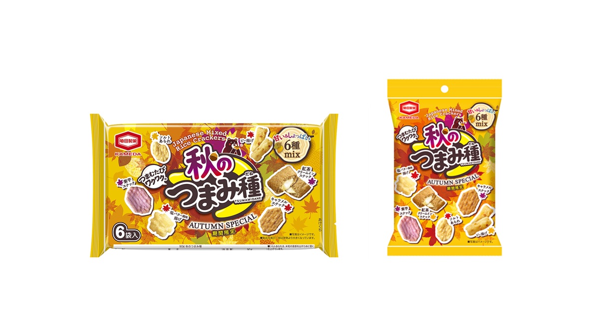 いろいろな味を少しずつ楽しめるミックス米菓「亀田のつまみ種」シリーズから、秋にぴったりな6種のおやつを詰め合わせた『秋のつまみ種』が期間限定で登場します。