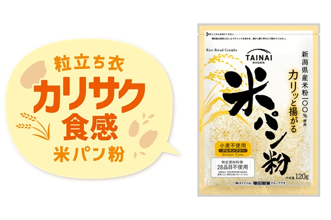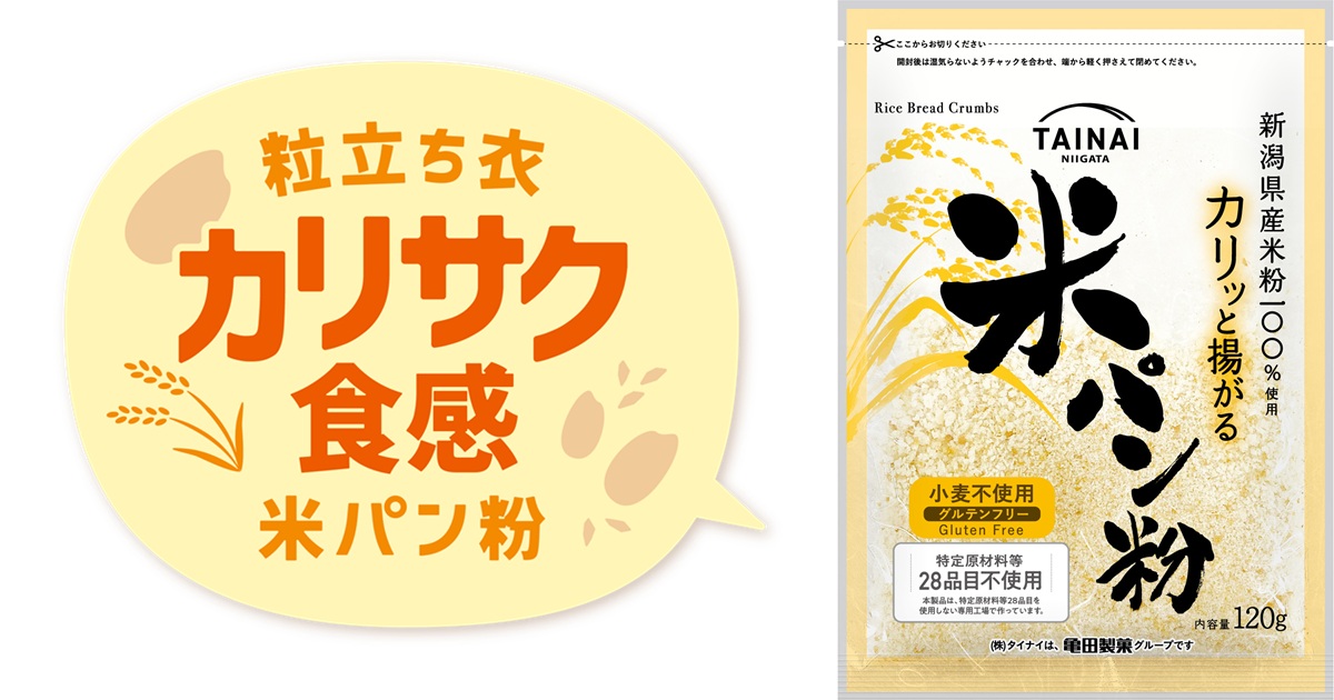 亀田製菓グループの株式会社タイナイ(本社:新潟県胎内市、代表取締役社長:塚本 肯志)は、『米パン粉』をリニューアルし、9月15日(月)より公式ECサイト「TAINAIオンラインショップ」および一部スーパーマーケットにて発売します。