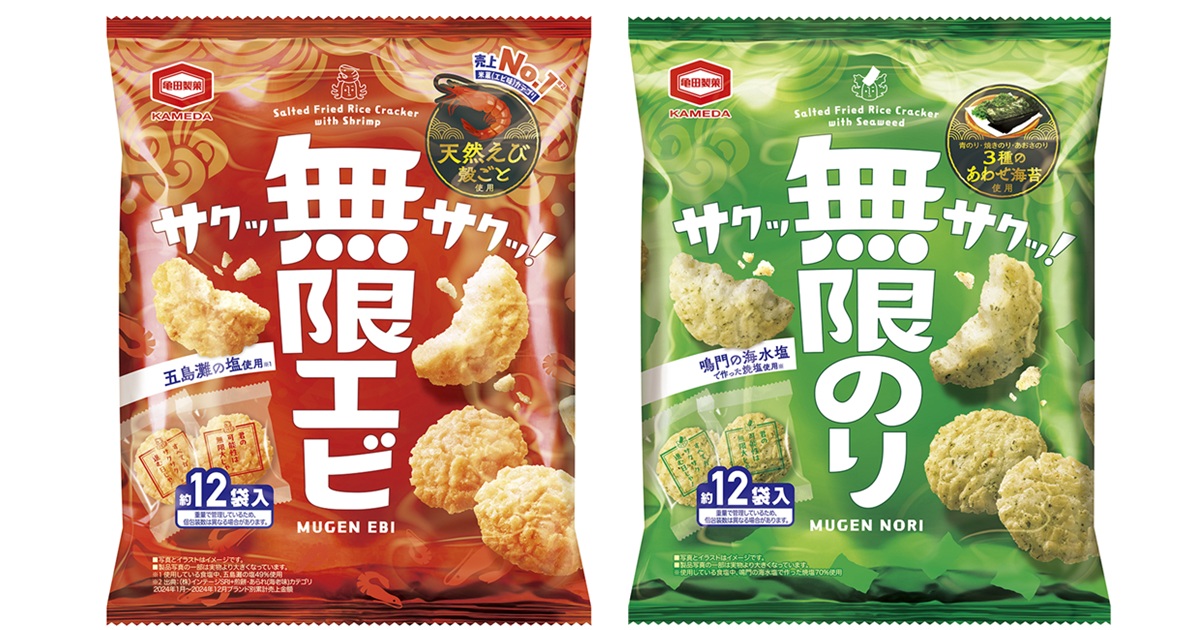 2021年2月に発売を開始し、発売後1週間で100万袋を達成した『無限エビ』。その2年後、2023年2月には『無限のり』を発売し、わずか2日間で100万袋を突破しました。無限シリーズは食べだしたら止まらないおいしさで、親子層を中心にご好評いただいています。今回、サクサクとした軽やかな食感はそのままに、素材の風味をより感じられるよう品質を磨き上げました。