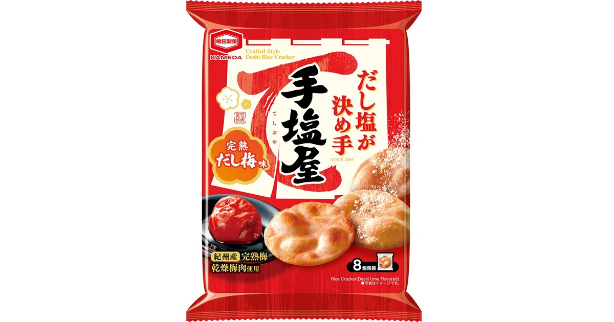 亀田製菓株式会社(本社:新潟県新潟市、代表取締役社長 COO:髙木 政紀)は、『8枚 手塩屋 完熟だし梅味』(以下:『手塩屋 完熟だし梅味』)を10月6日(月)から全国のスーパーマーケットにて発売します。