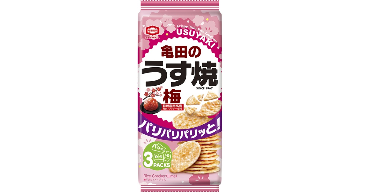 亀田製菓株式会社(本社:新潟県新潟市、代表取締役社長 COO:髙木 政紀)は、50年以上にわたり愛されてきたロングセラーの「亀田のうす焼」ブランドから、ほっと一息つきたい時間のおともにぴったりな『70g 亀田のうす焼 梅』(以下:『亀田のうす焼 梅』)を3月23日(月)より全国のスーパーマーケットにて発売します。
