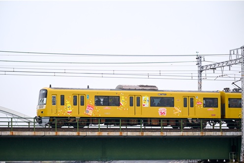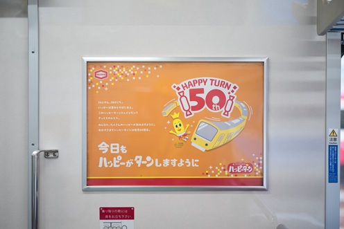 お客様の幸せやクスっと喜んでいただけるような体験を生み出す活動のひとつとして、50周年を記念し、ハッピーターンが京急電鉄の「京急イエローハッピートレイン」をジャックする『ハッピーターントレイン』を運行します。車内外を50周年仕様に彩り、見て、乗りたくなる“走るハッピー”として、日常の移動時間を楽しく演出します。