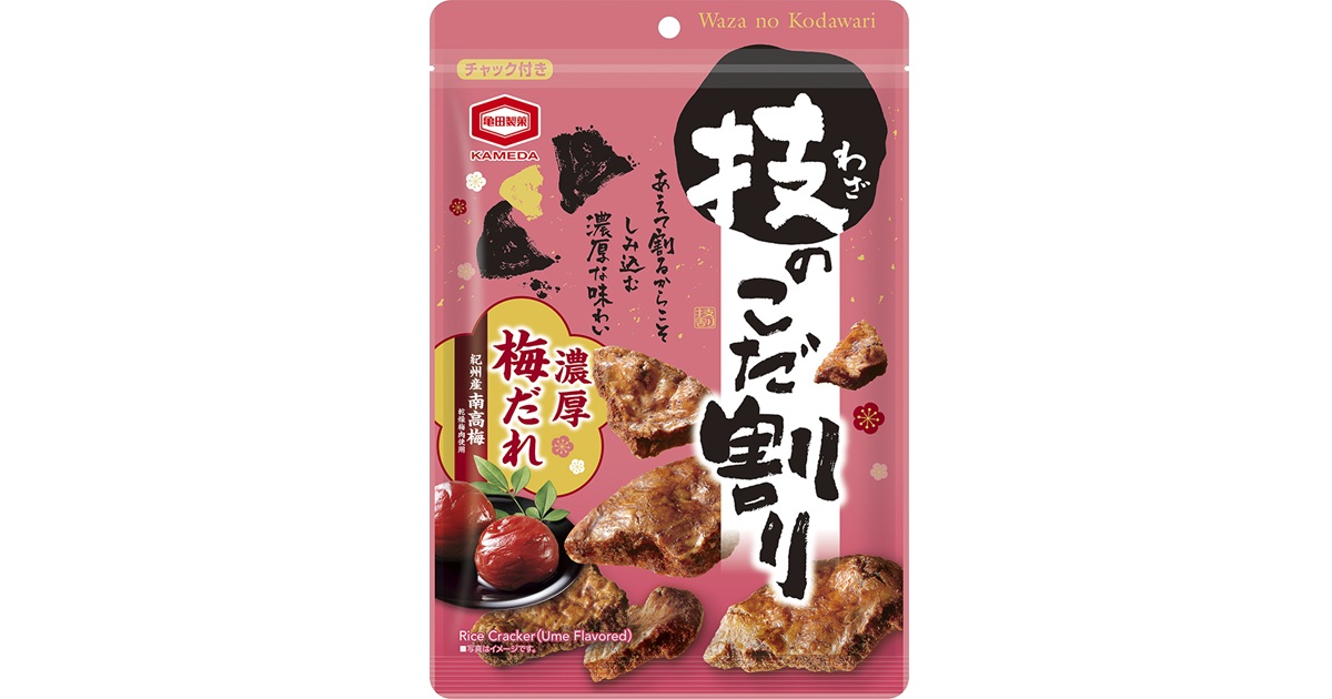 亀田製菓株式会社(本社:新潟県新潟市、代表取締役社長 COO:髙木 政紀)は、『100g 技のこだ割り 濃厚梅だれ』(以下:『技のこだ割り 濃厚梅だれ』)を3月23日(月)から全国のスーパーマーケットにて発売します。