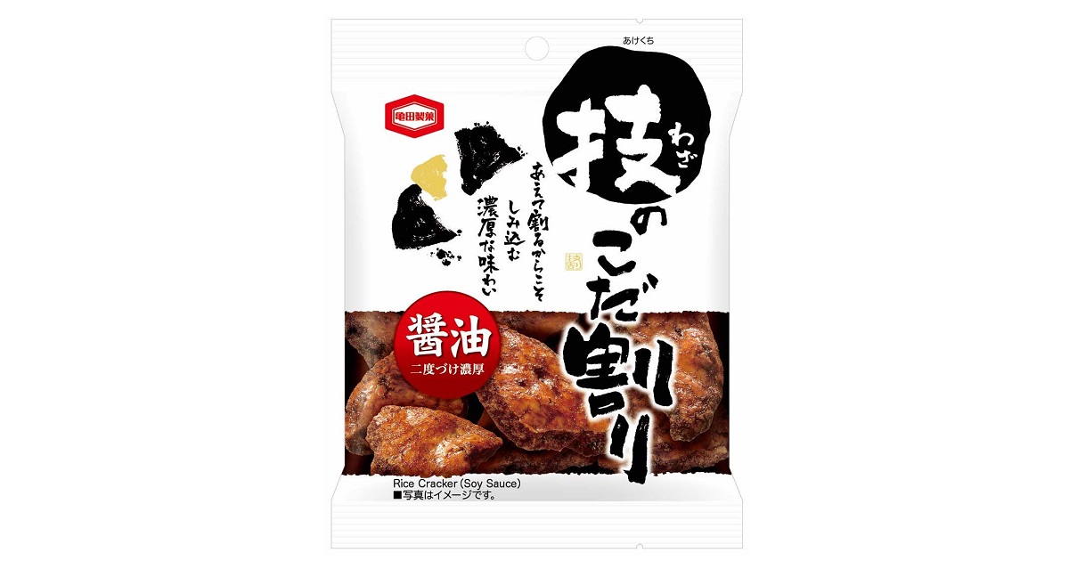あえて割った堅焼きせんべいの断面から、たまり醤油や濃口醤油をブレンドした特製醤油だれをたっぷりとしみ込ませた濃厚な美味しさ。