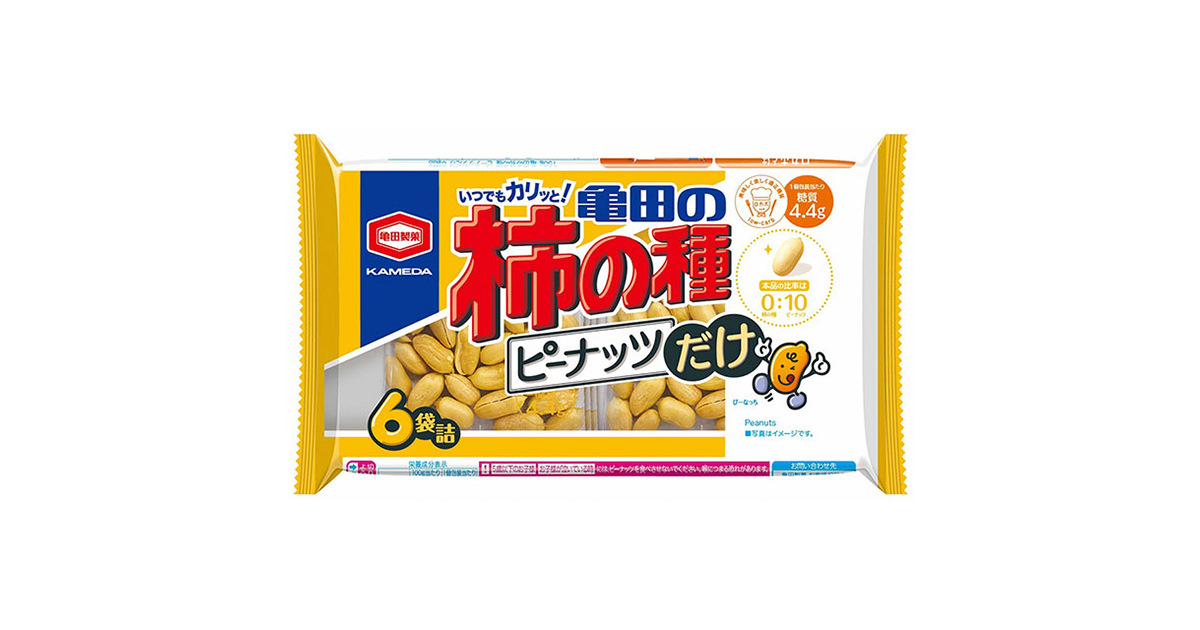 亀田の柿の種のピーナッツだけが便利な6袋詰になりました。
