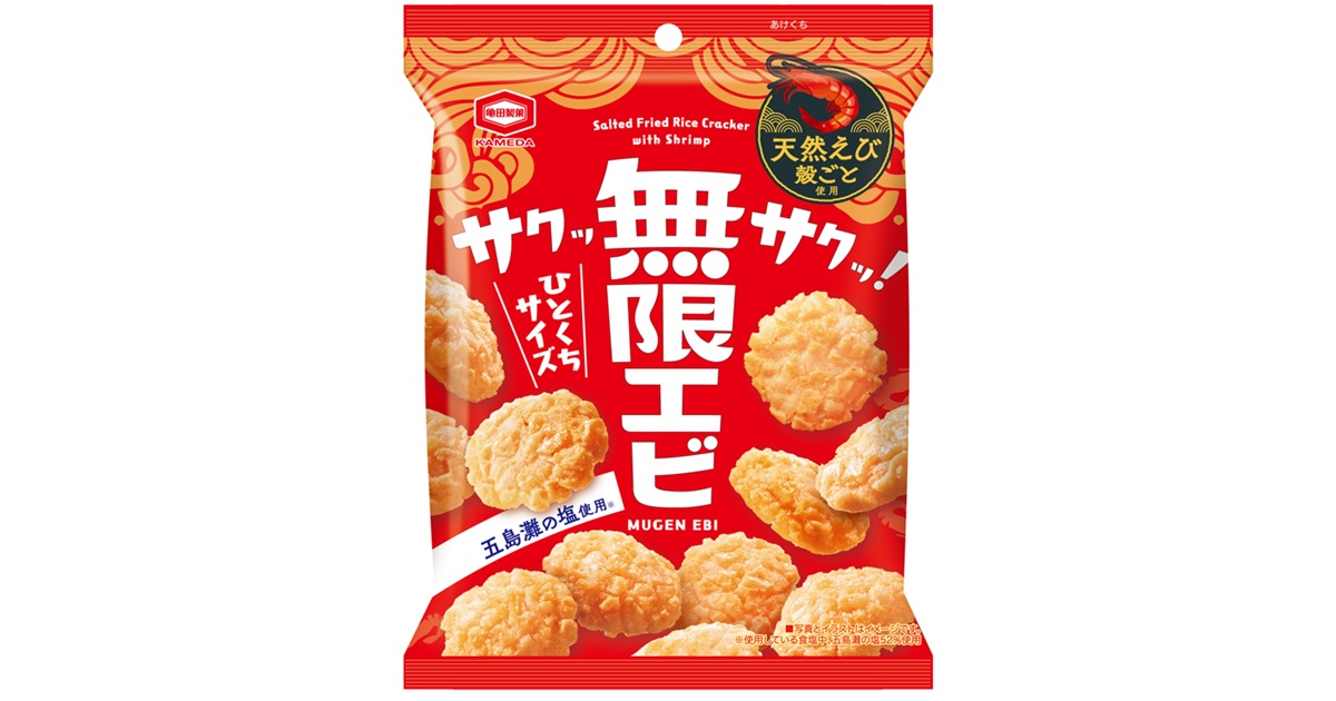 天然えびを殻ごと練り込んだ香ばしい味わいと、サクサク軽快食感でとまらない美味しさ!食べやすいひとくちサイズ!