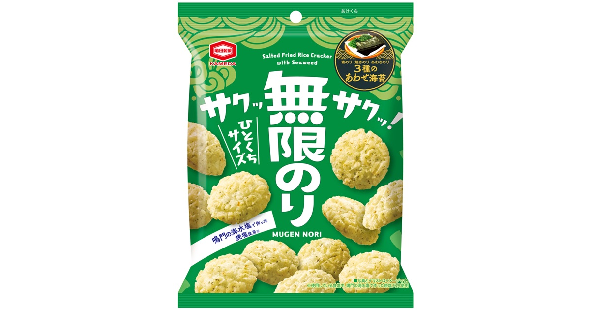 3種の海苔の風味を鳴門の海水塩で作った焼き塩が引き立てるやみつきな味わい。食べやすいひとくちサイズ!