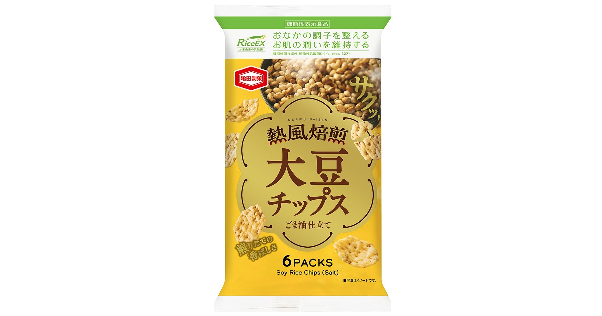 大豆をお米の生地に練り込み“熱風焙煎”製法で焼き上げたまるで煎りたてのような香ばしさの大豆チップス!