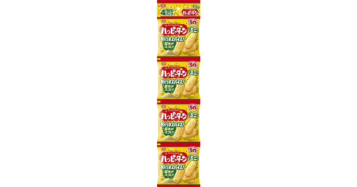 旨みがスゴいハッピースパイスがツイてる!つまみやすいミニサイズで、小分けや持ち運びに便利な4連パック。