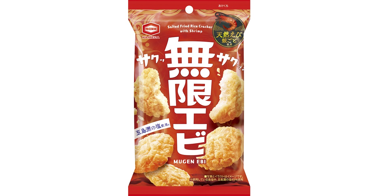 天然えびを殻ごと練り込んだ香ばしい味わいと、サクサク食感でクセになるおいしさ!持ち運びにも便利な食べきりサイズ。
