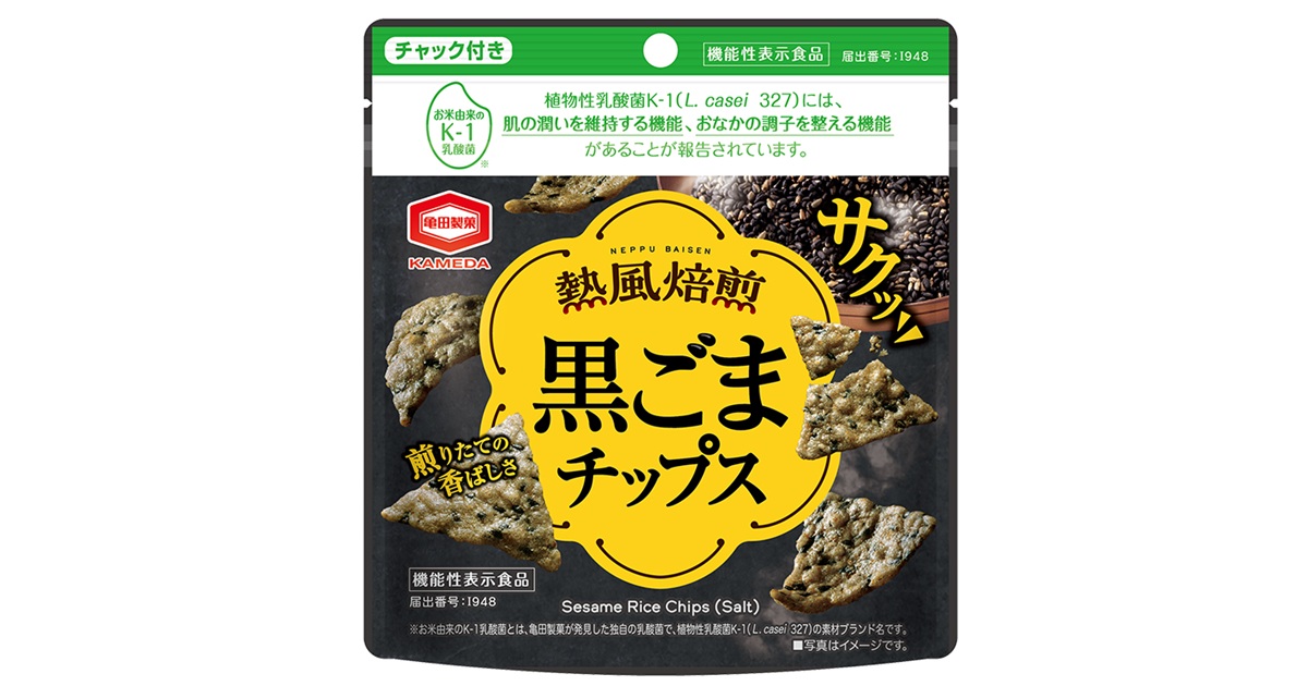お米由来の乳酸菌を手軽に摂取できる、おいしくてカラダにうれしいチップスです。黒ごまを粒ごと練り込んだお米の生地を熱風焙煎製法で焼き上げることで、まるで煎りたてのような黒ごまの香ばしさをお楽しみいただけます。