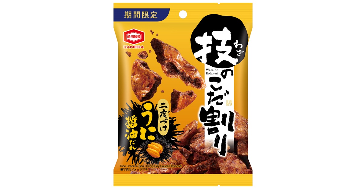 うにの香りと甘さを感じる濃厚な「特製うに醤油だれ」を、あえて割った堅焼き煎餅に贅沢に二度づけした濃厚な味わいです。