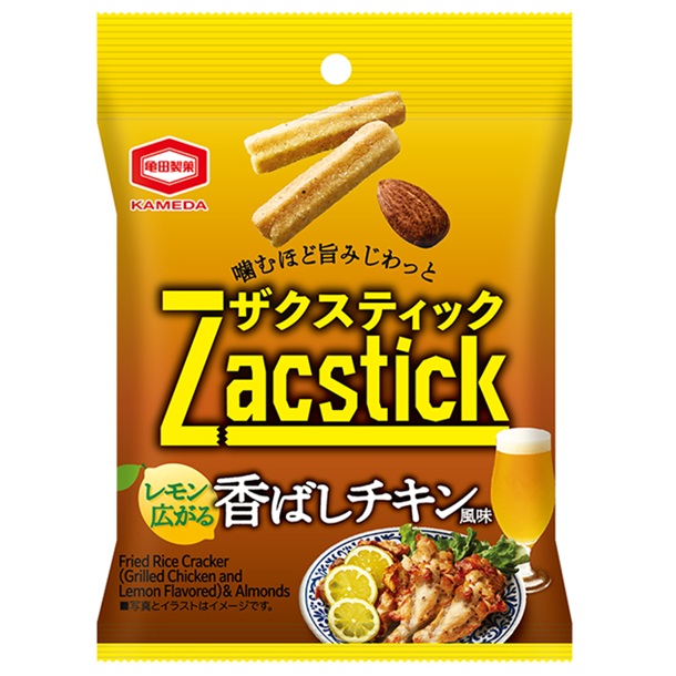 もち米(タイ産)、植物油脂、アーモンド、砂糖、食塩、香辛料、チキンエキスパウダー、たん白加水分解物、でん粉、粉末しょうゆ、香味粉末油脂、レモン果汁パウダー/調味料(アミノ酸等)、香料、植物レシチン、香辛料抽出物、着色料(カラメル)、(一部に小麦・アーモンド・大豆・鶏肉を含む)