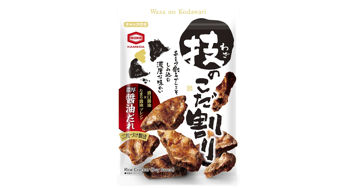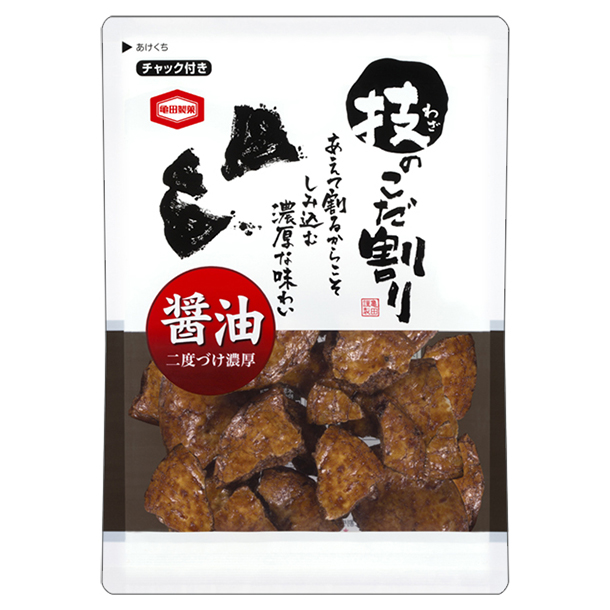 こだわりまみれの濃厚堅焼き。あえて割った堅焼きせんべいの断面から、たまり醤油と濃口醤油をブレンドした特製醤油だれをたっぷりとしみ込ませた濃厚な美味しさ。