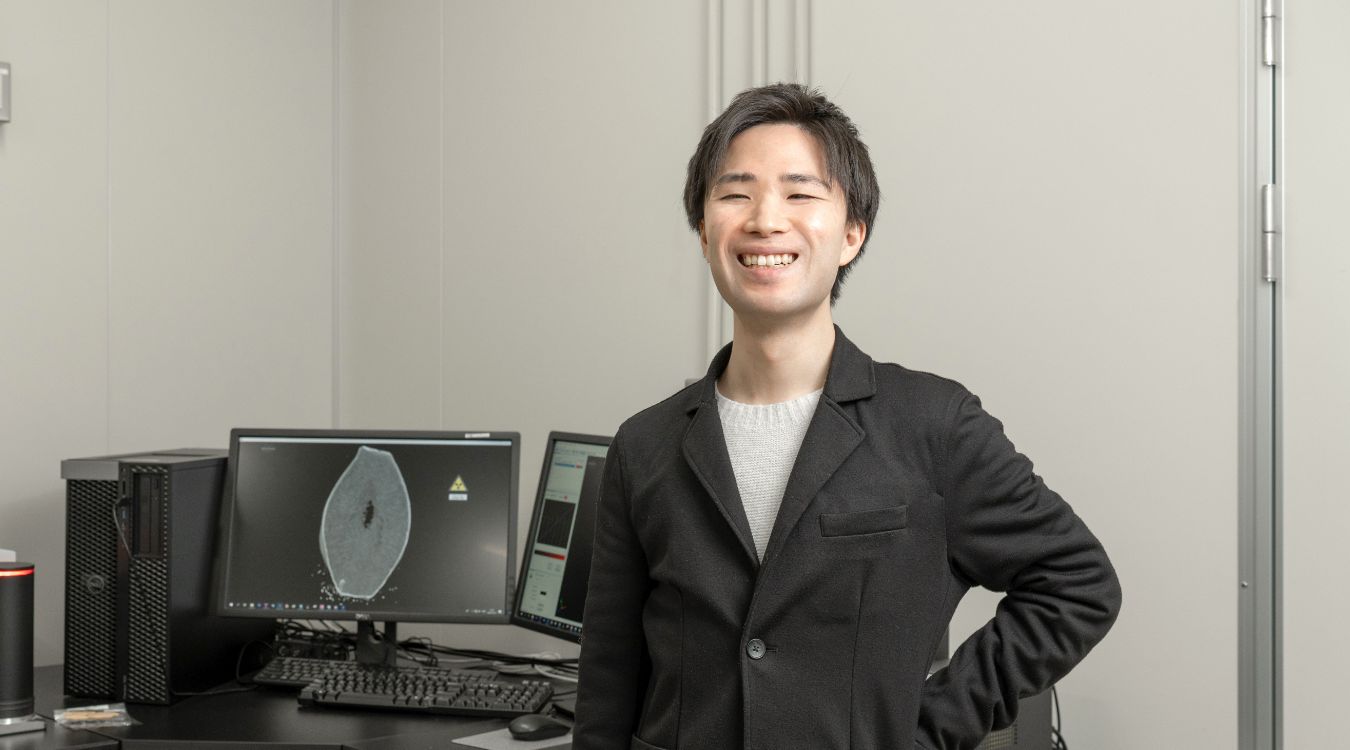 この研究で印象的だったのは「口どけ感の数値化」を大学と共同研究したことです。これをきっかけに、私は大学に博士課程で再入学し、通常業務と2足のわらじで構造解析などについて学びました。博士研究ではこれまでにない取り組みとして、X線CTを使って米菓の内部構造を数値化し、食感との関係を追求。さらに、サクサク食感と油の染み込みとの関係を明らかにし、それらを総合的に評価して口どけ感の数値化を行いました。これらの研究によって、米菓構造や食感を目に見える形で議論することができるようになり、開発や工場に製造条件にまで踏み込んだアドバイスができるようになったのです。この研究と今後の開発の精度アップのためには、高額なX線CTを導入する必要があり、それがどう会社に貢献できるかアピールしたこともいい経験でした。承認に苦心する中、経営幹部に研究で使った「亀田の柿の種」の空洞構造を披露する機会を得ました。目で見える面白さ、分かりやすさを伝えることができ、見事導入となったのです。