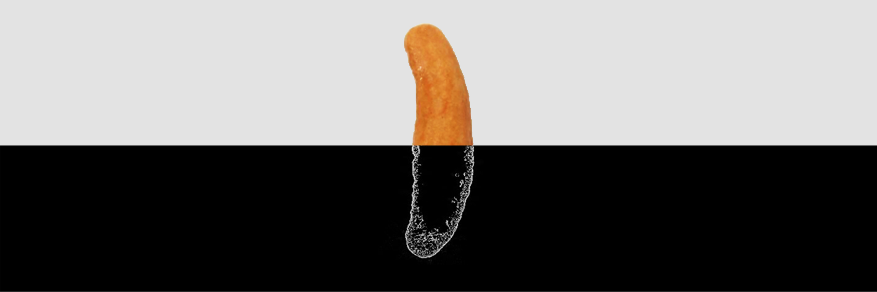 味付けも米菓の美味しさに重要な要素です。醤油せんべいの醤油の染み込み度合いを可視化することで、商品の特長をお客様に分かり易く伝えるための研究も行っています。『技のこだ割り』は二度づけ製法なので、中まで醤油が浸透していることが分かります。
