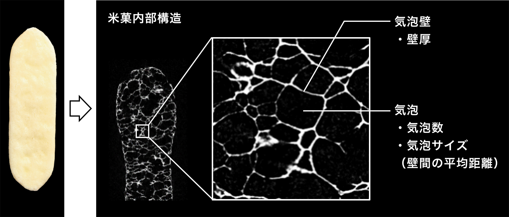 ※スダチ:米菓断面の気泡構造のこと。米菓やパンの構造評価で使用する言葉。